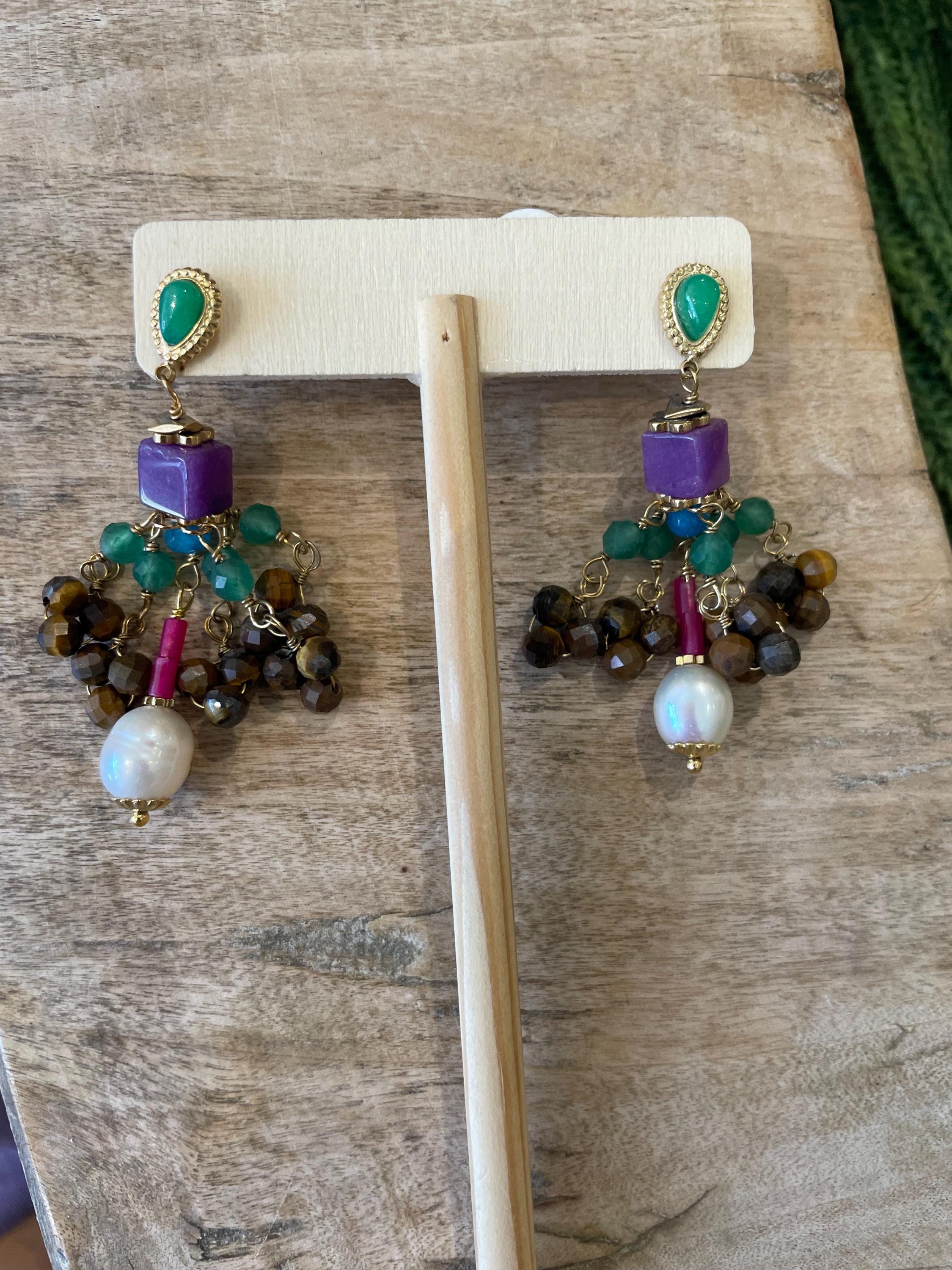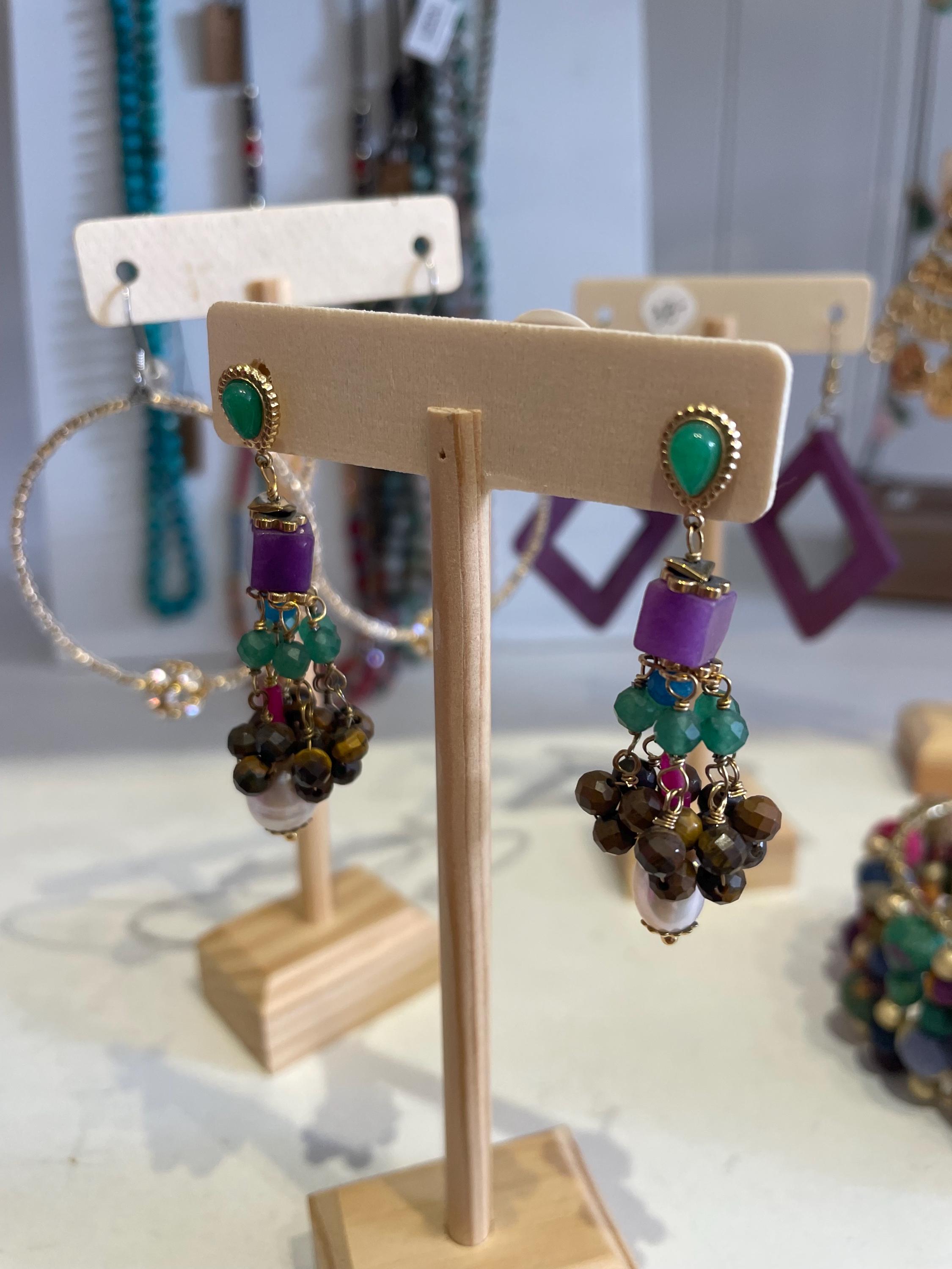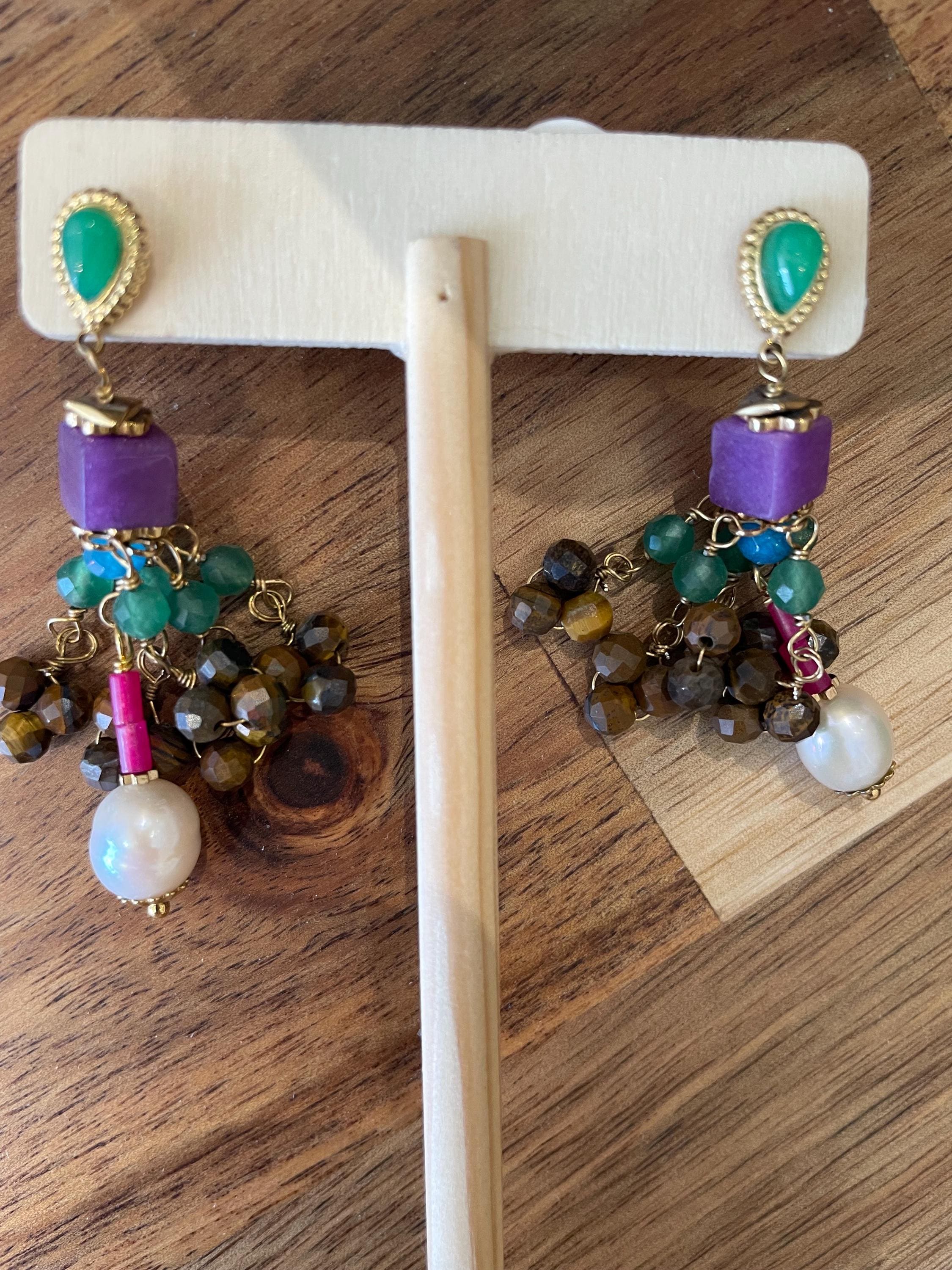 multi colored stones and beads...! perfect boho look !beautiful! these are approx 2 inches total length
