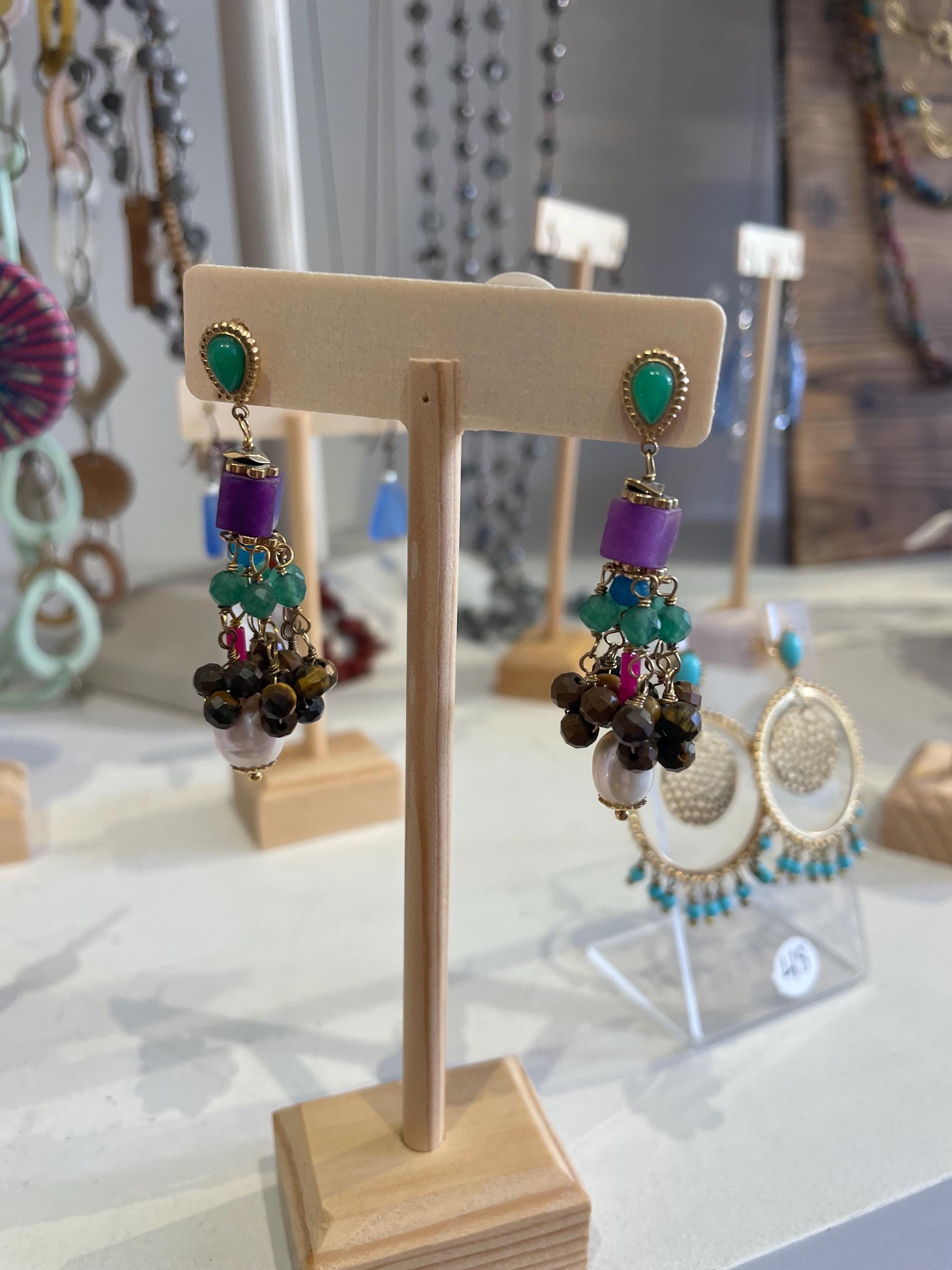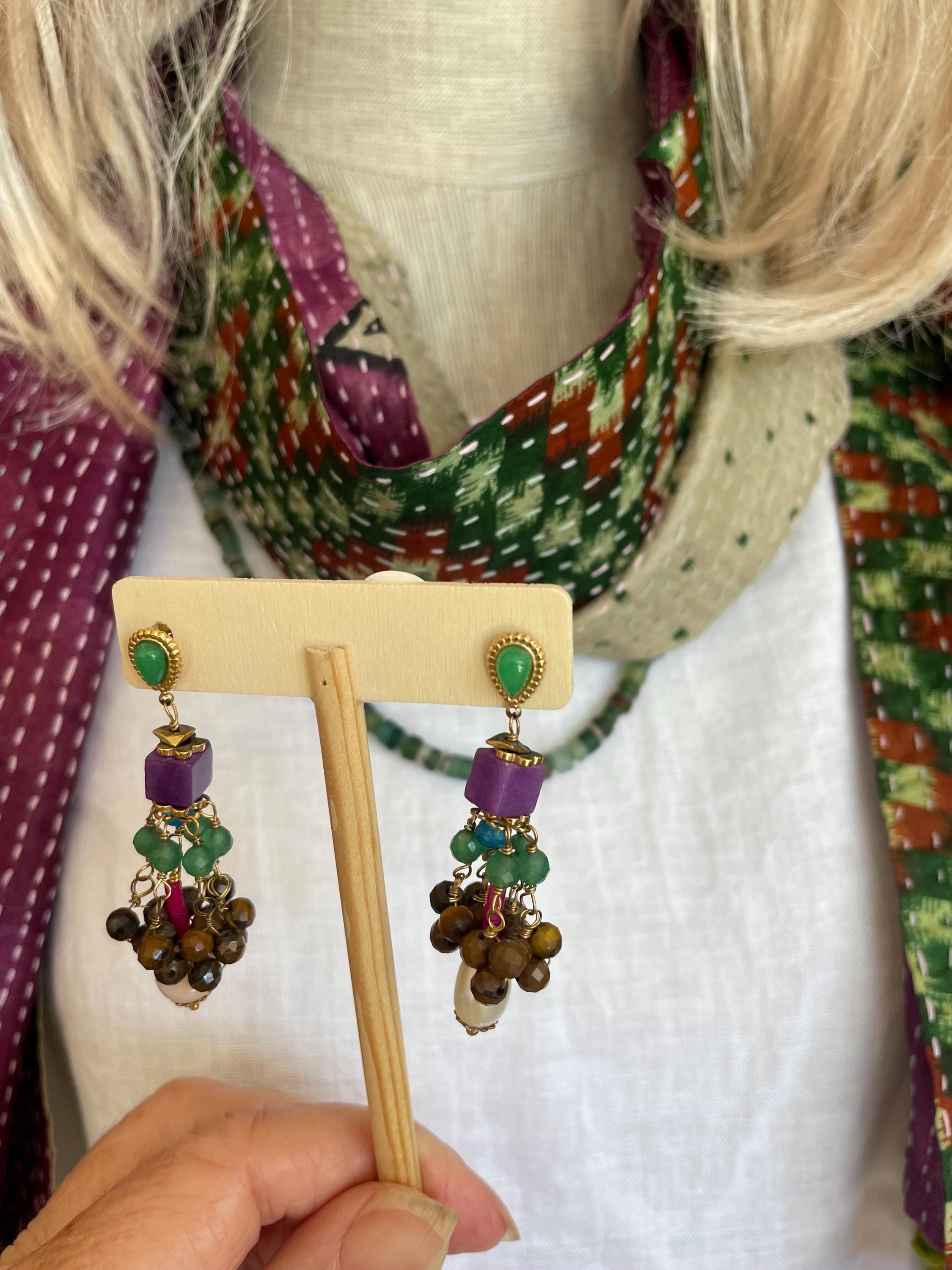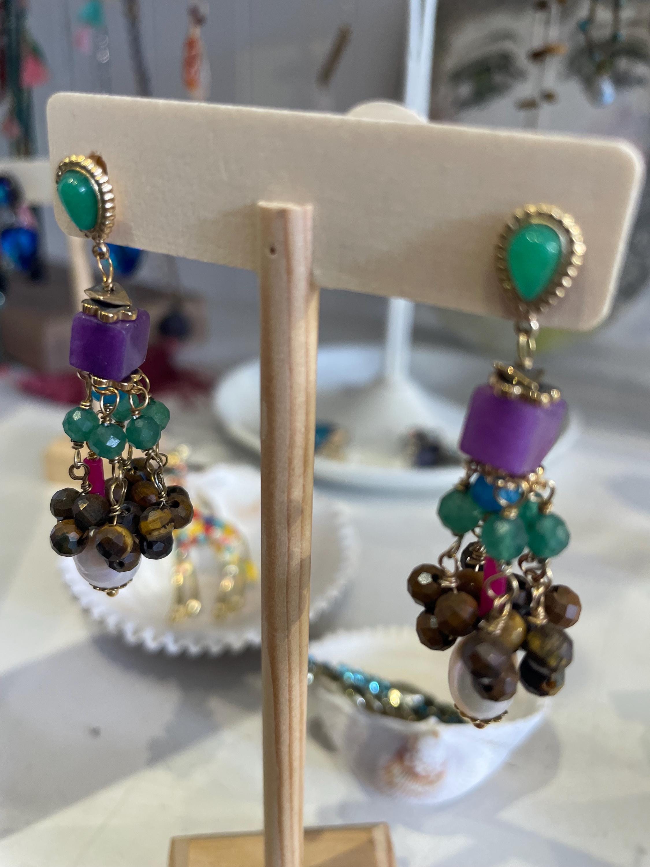 multi colored stones and beads...! perfect boho look !beautiful! these are approx 2 inches total length